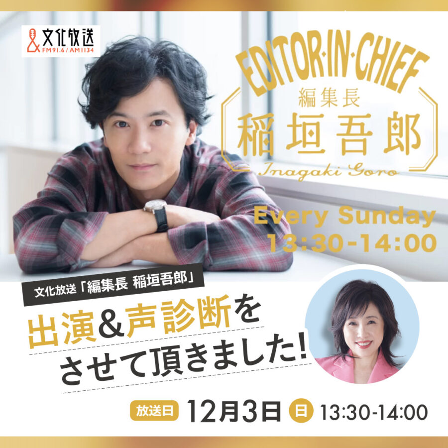 文化放送「編集長 稲垣吾郎」出演&声診断をさせて頂きました!