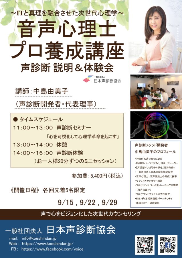 11月9日,10日 開発者直伝 音声心理士講座 in 京都 開催!